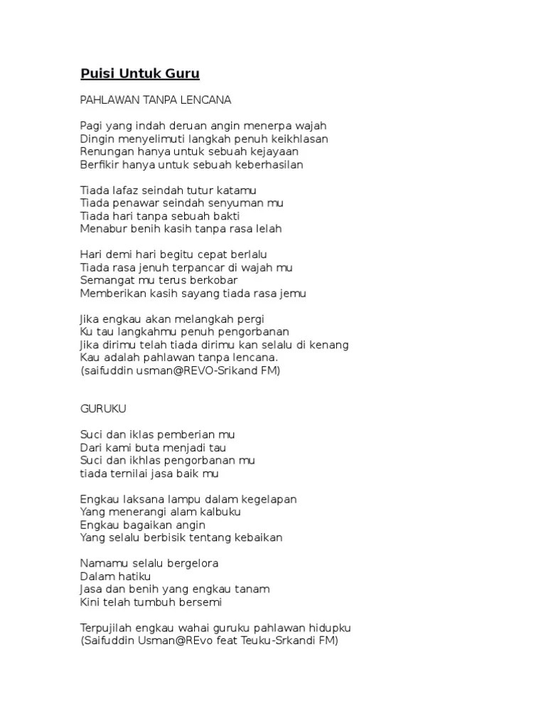 Puisi Tentang Guru Rima Aaaa Koleksi Puisi