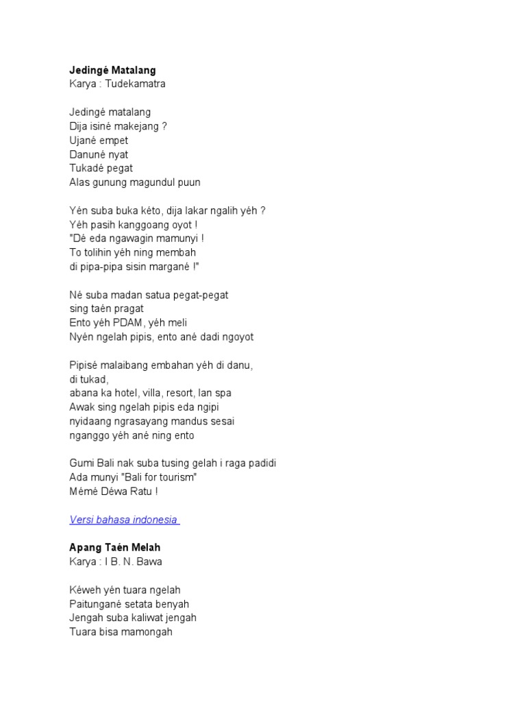 Safety How YouTube works Test new features Press Copyright Contact us Creators. Teges Puisi Bali Anyar Puisi Bali anyar inggih punika kria sastra ri kala ngametuang manah nganggen srana basa Bali tur susunannyane kaiket nganutin kapatehan suara rima wirama irama wirasa imaji miwah kosabasa. Mar 11 2021 Puisi Bali Anyar punika wantah sastra sane kaangge nartaang pabesen ngangge basa sane bawak nanging dagingne padet.