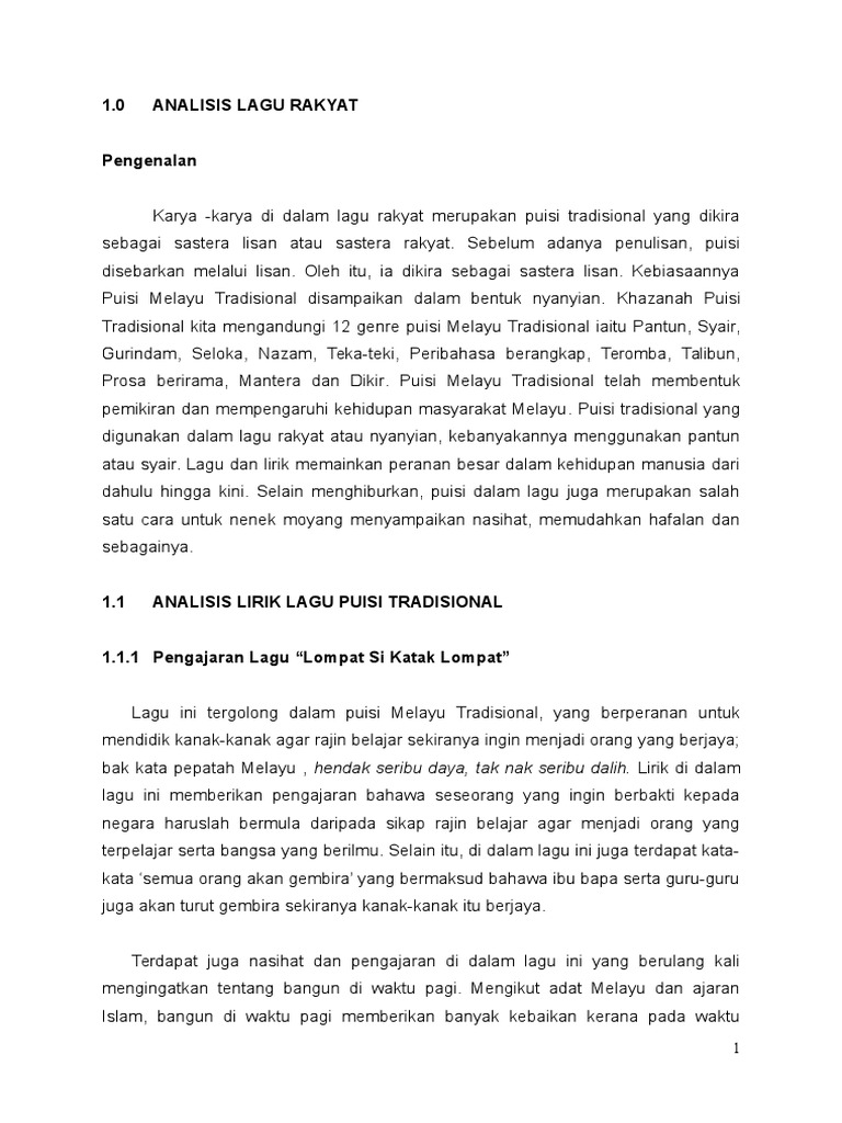 Tujuannya untuk menyampaikan pengajaran atau nasihat 6. Puisi rakyat puisi lama merupakan jenis puisi yang terikat oleh berbagai ketentuan seperti banyaknya larik setiap bait banyaknya suku kata setiap larik ataupun pola rimanya. Termasuk juga dari puisi rakyat yaitu puisi lama yang berisi nilai nilai dan pesan pesan warisan leluhur bangsa indonesia.