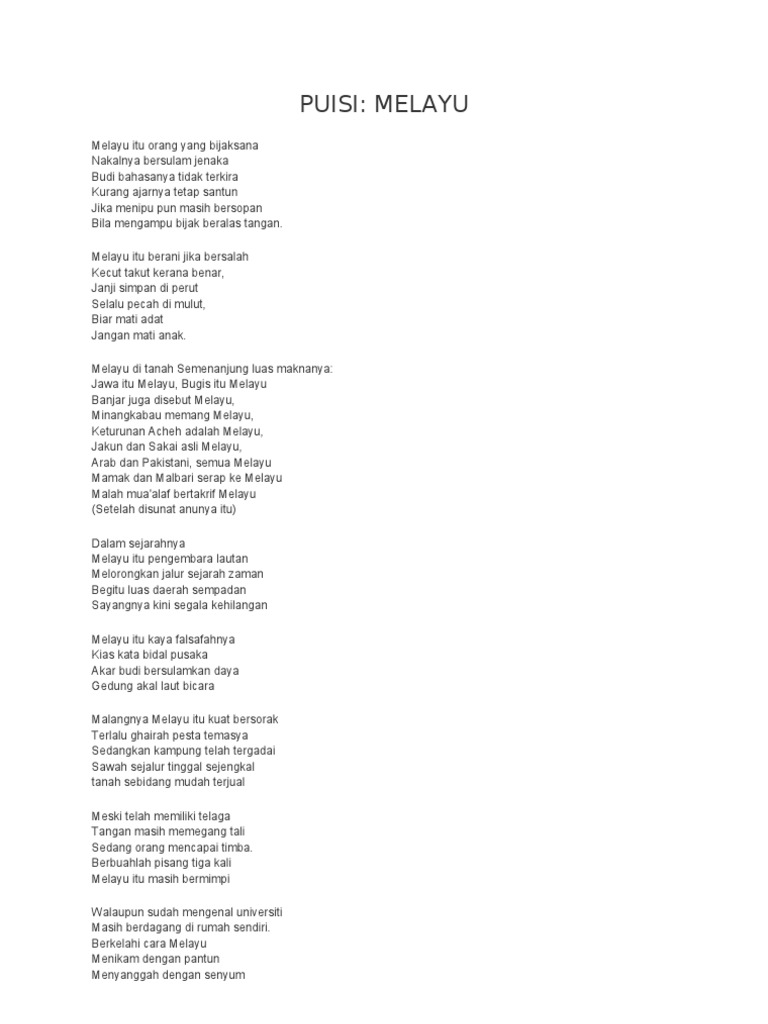 Karya sastra tertulis ini juga didalamnya mengandung sebuah irama rima dan ritma dalam proses penyusunan dari setiap larik dan juga baitnya. Teman bicara ini sekadar renungan buat ingatan dan juga panduan hargailah nyawa yang dipinjamkan usah biarkan siri dalam kealpaan. Perwajahan Puisi Tipografi Tipografi merupakan bentuk format suatu puisi seperti pengaturan baris tepi kanan-kiri hingga halaman yang tidak dipenuhi kata-kata.